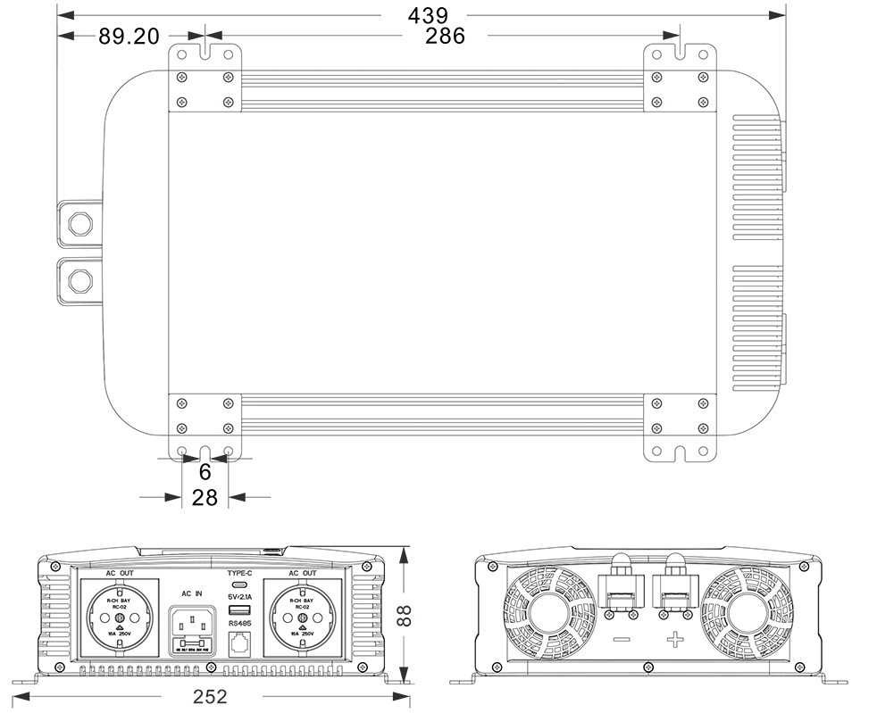 Mekaniske tegninger: (439x252*88mm)