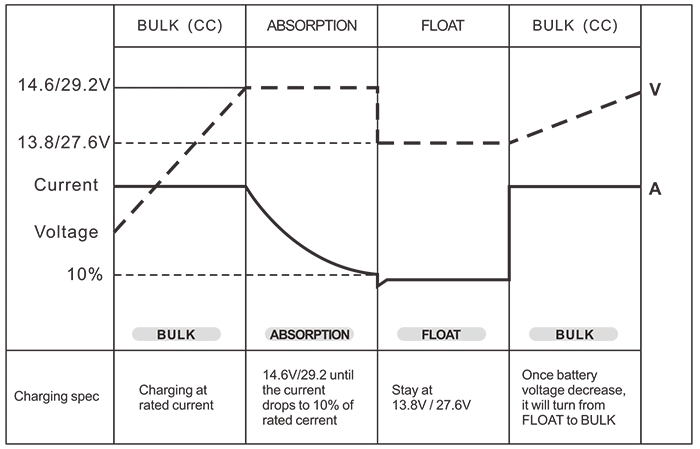 Batterikontroll (3-trinns batteriladere) Bulk /Absorpsjon /Flyt