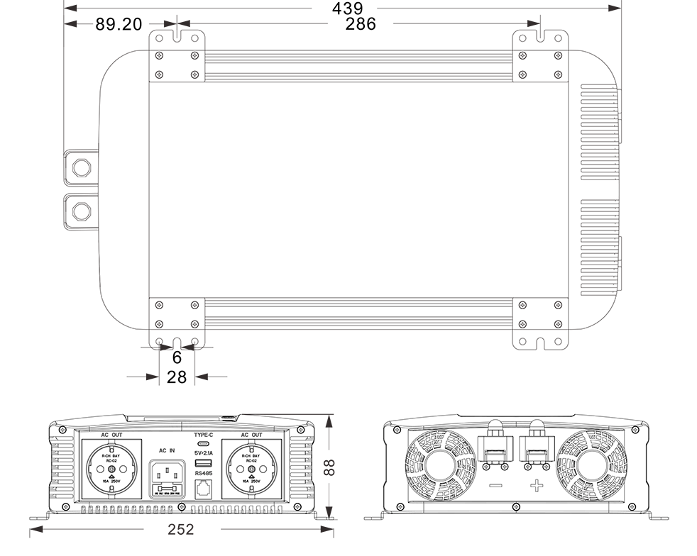 Mekaniske tegninger: (439x252x88mm)