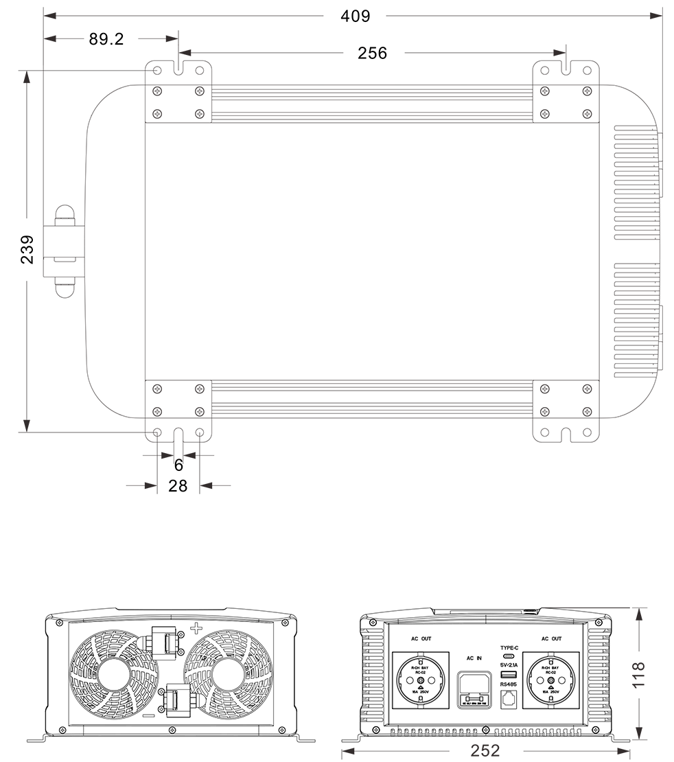 ●Utgangsbeskyttelse: Kortslutning/ Overbelastning/ Overtemperatur/ Overspenning