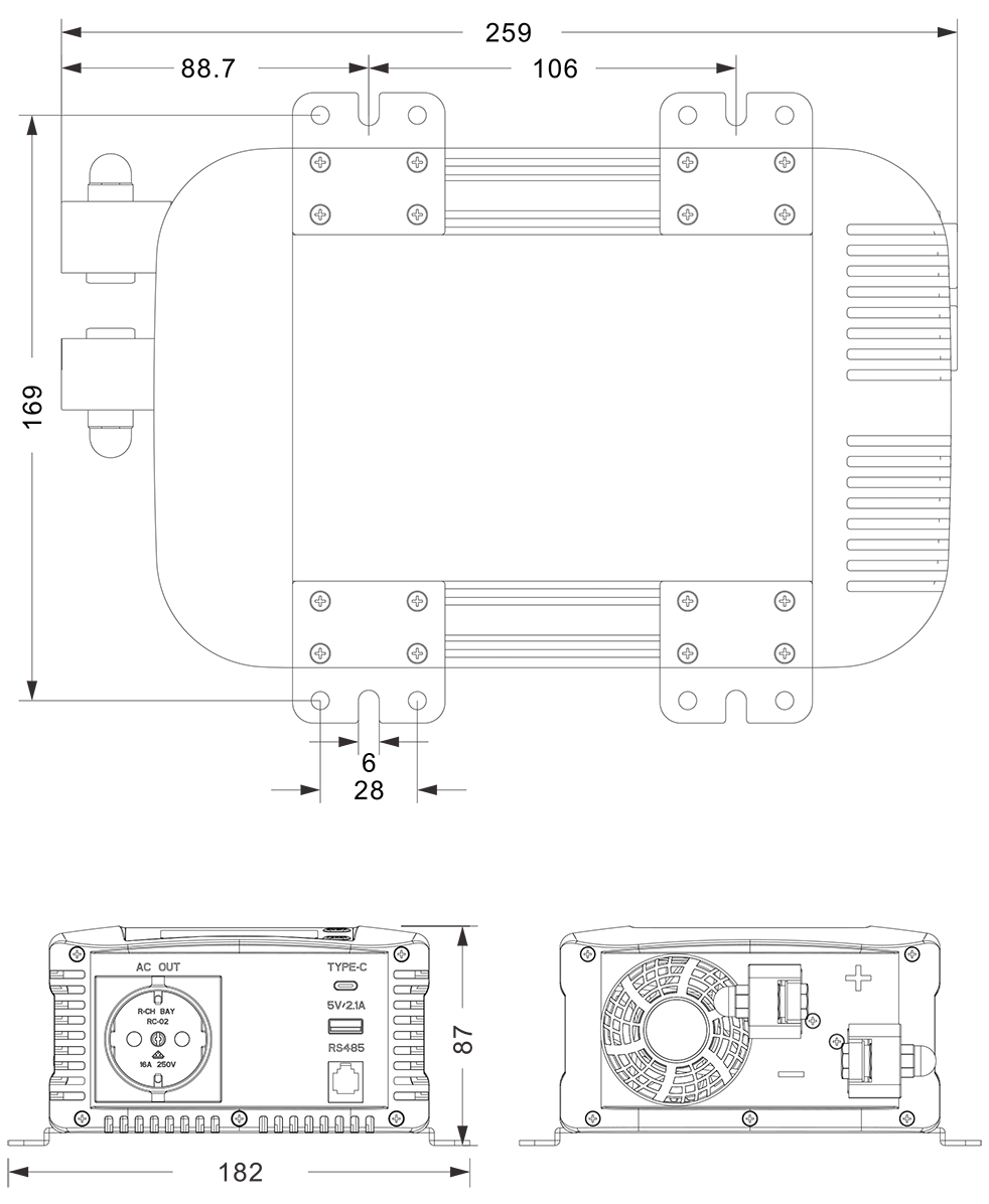 Andre Dimensjon (B×H×D) 259×182×87 mm