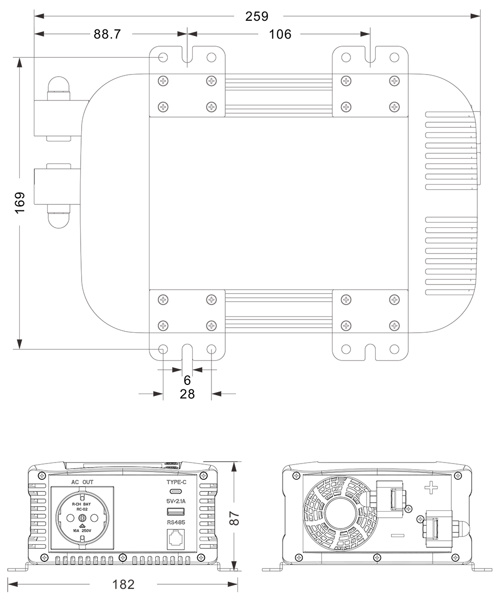 Mekaniske tegninger: (259x182x87mm)