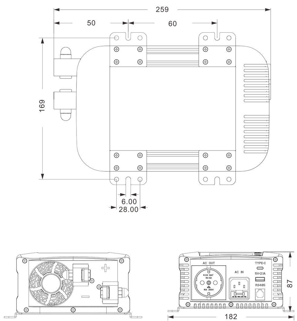 Mekaniske tegninger: (259x182x87mm)