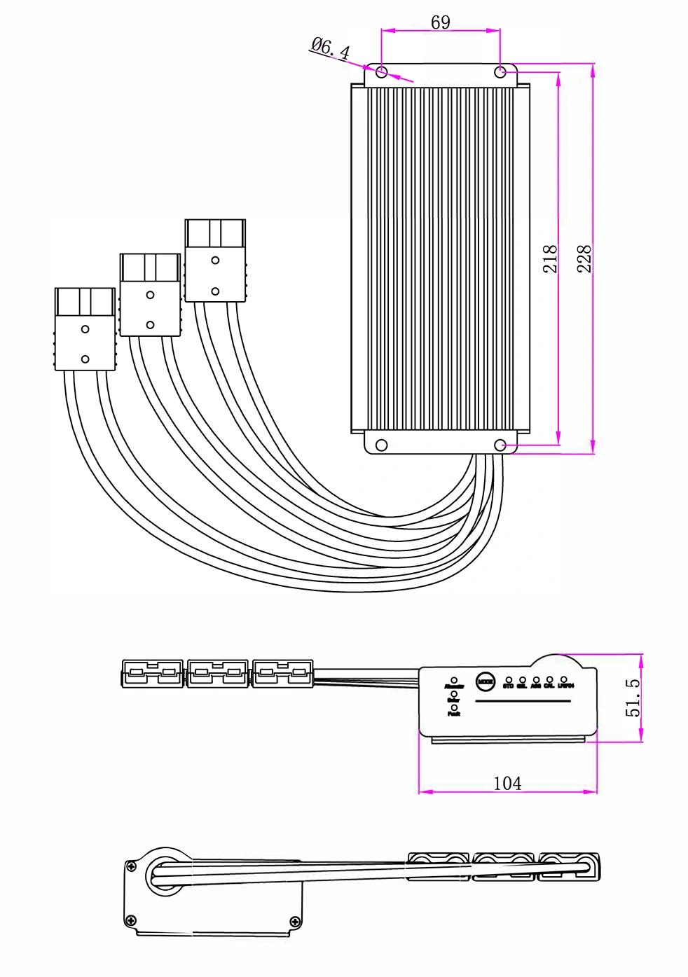 Mekaniske tegninger: (228x104x51,5 mm)
